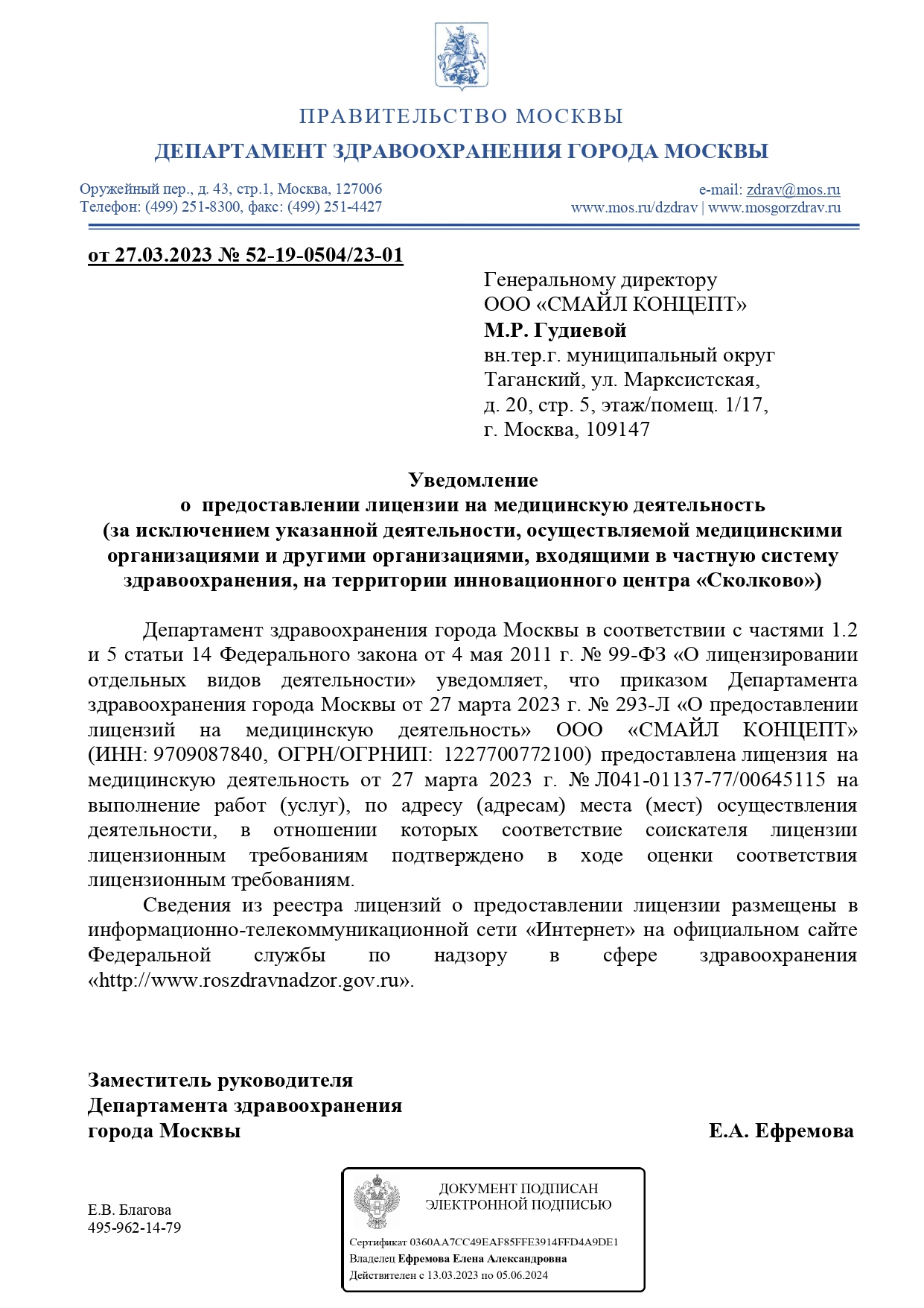 Лицензия № ЛО-41-01137-77/00645115 от 27.03.2023 года на срок: бессрочно